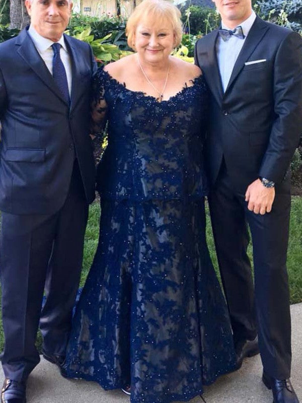 Sheath/Column Lace V-neck Long Sleeves Sweep/Brush Train Mother of the Bride Dresses - US 2 / UK 6 / EU 32