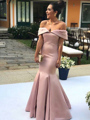 Trumpet/Mermaid Satin Ruffles Off-the-Shoulder Sleeveless Floor-Length Mother of the Bride Dresses - US 2 / UK 6 / EU 32